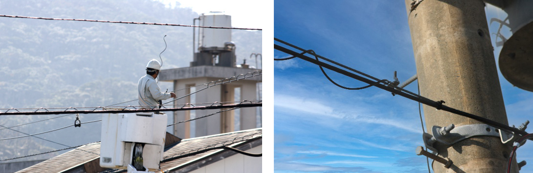 安全性と施工性に優れており、ブロードバンドによるネットワーク社会を支えるインフラ整備(空中管路による電力・通信ケーブル付設)に活用されています。