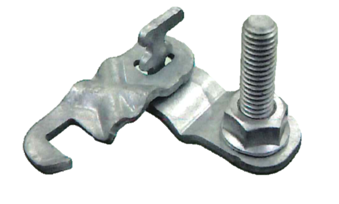 熱間圧延鋼板及び鋼帯、冷間圧造用炭素鋼に溶融亜鉛メッキを施しており、耐食性・耐久性に優れております。また、スーパーハンガーとともに外径 5.4 ~ 9.6 mm の鋼より線に取り付けられ、固定用のボルトが1カ所となっており施工性に優れています。